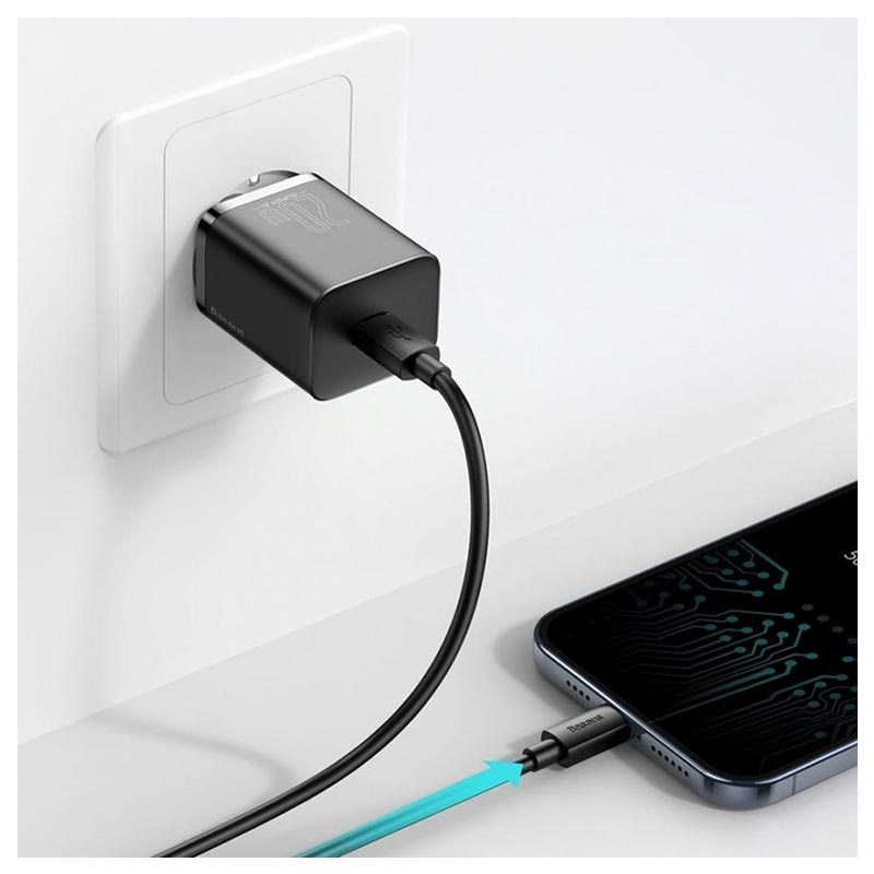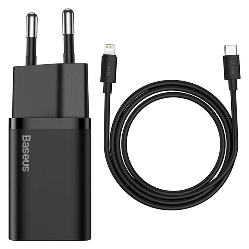 Baseus Super Si Schnell Ladegerät mit USB-C / Lightning Kabel - 20W - Schwarz