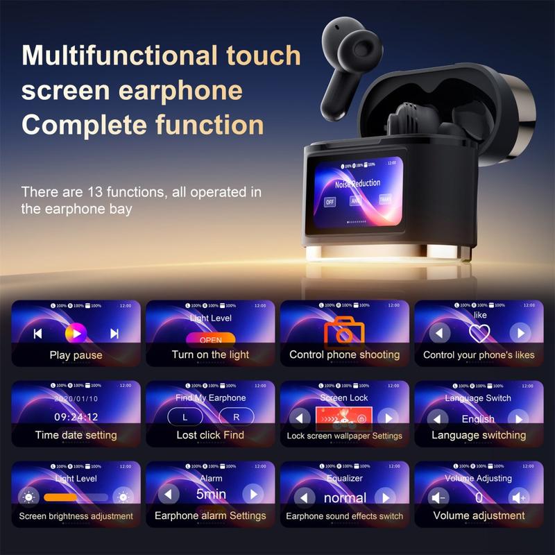 • BD2 Smart Digital Display Wireless Kopfhörer / TWS Ohrhörer mit Ladeetui - Touchscreen, ANC & ENC Noise Cancelling