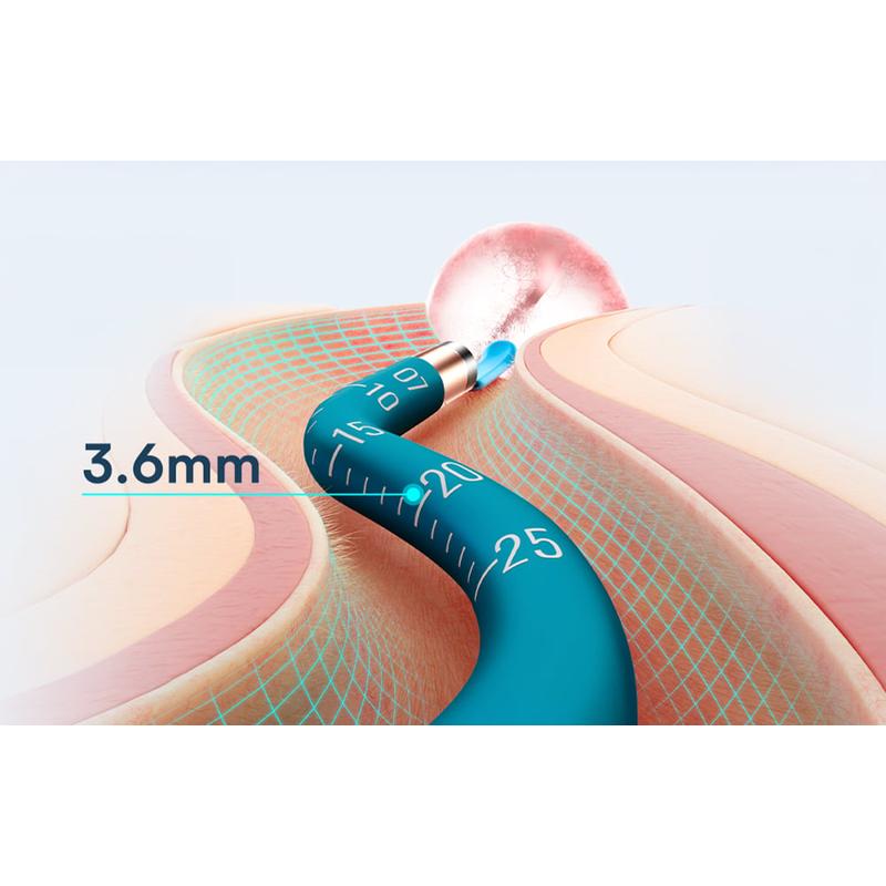 Sein flexibles Design und die Beschichtung aus medizinischem Silikon sorgen für eine sanftere und angenehmere Anwendung, während die mitgelieferten Aufsatzsets und die abnehmbare Präzisionspinzette die Entfernung verschiedener Arten von Ohrenschmalz und Verschmutzungen erleichtern. Mehrere farbcodierte Zubehörteile machen das Set zudem praktischer für den Familiengebrauch.