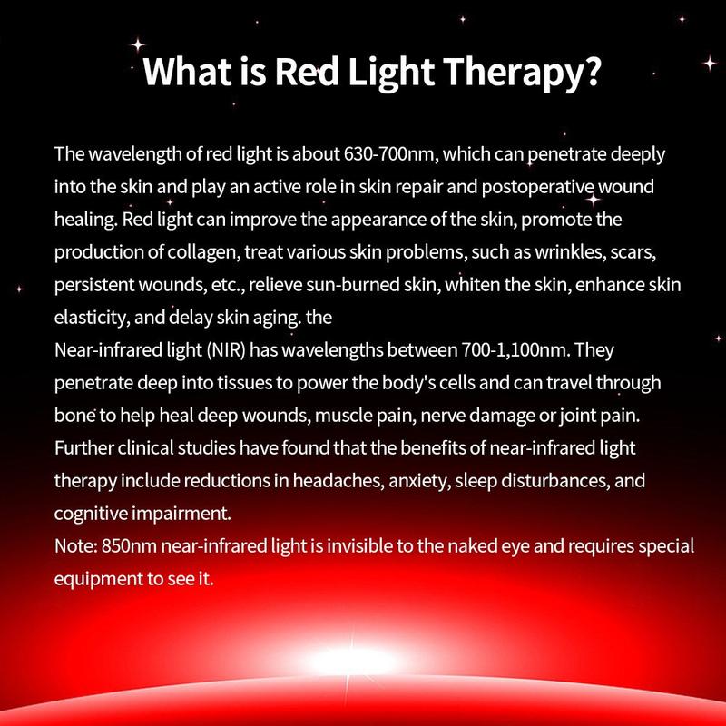 - Fortschrittliche Infrarot-Lichttherapie - Ausgestattet mit 44 Dual-Core 660-850 nm LED-Lampenkugeln, die tief eindringendes Infrarot- und Rotlicht abgeben, um die Durchblutung zu verbessern und Schmerzen zu lindern.