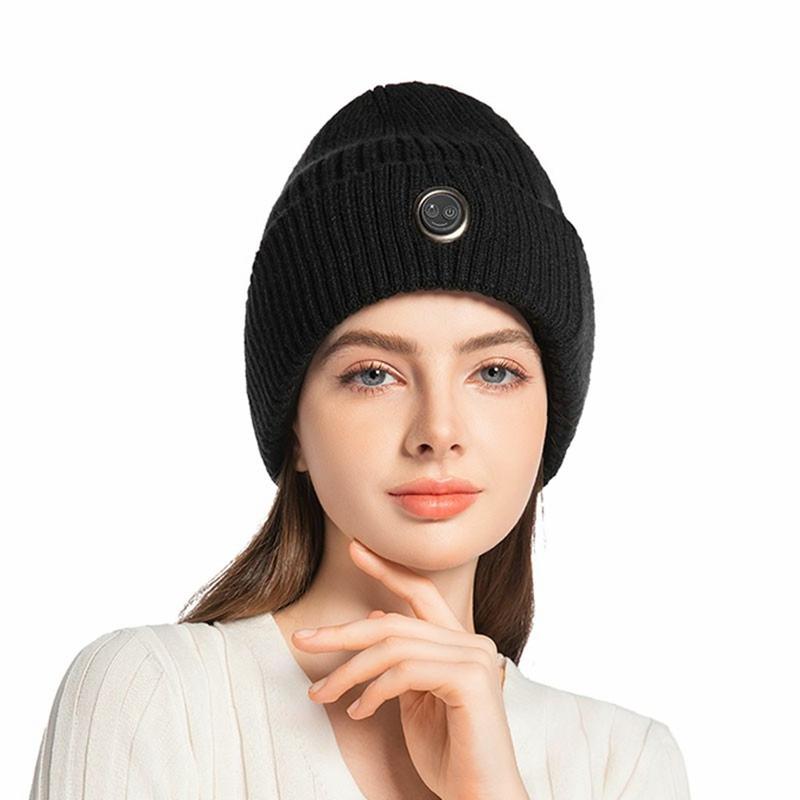 Beheizte Wintermütze mit Fleecefutter - 5000mAh Akku, 3 Wärmestufen, elektrische Wärmemütze für Skifahren & Outdoor-Aktivitäten
