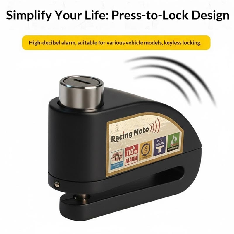 Schützen Sie Ihr Fahrrad, E-Bike oder Motorrad mit dem BENGGUO-Scheibenbremsenschloss mit einem leistungsstarken 110-dB-Alarm. Ein hochempfindlicher Bewegungssensor löst bei Manipulationen sofort einen akustischen Alarm aus und schreckt so innerhalb von Sekunden von Diebstahlversuchen ab. Mit seinem robusten Metallgehäuse und der wetterfesten Dichtung ist es für zuverlässige Sicherheit im Alltag auf Stadtstraßen, in Parkhäusern und bei der Lagerung im Freien ausgelegt.