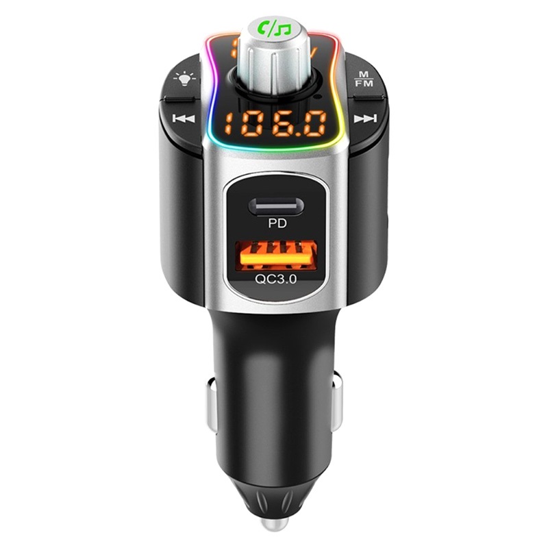 Bluetooth FM Transmitter und Schnell Kfz-Ladegerät mit LED-Licht BC67 - USB-A QC 3.0, USB-C PD, 15W