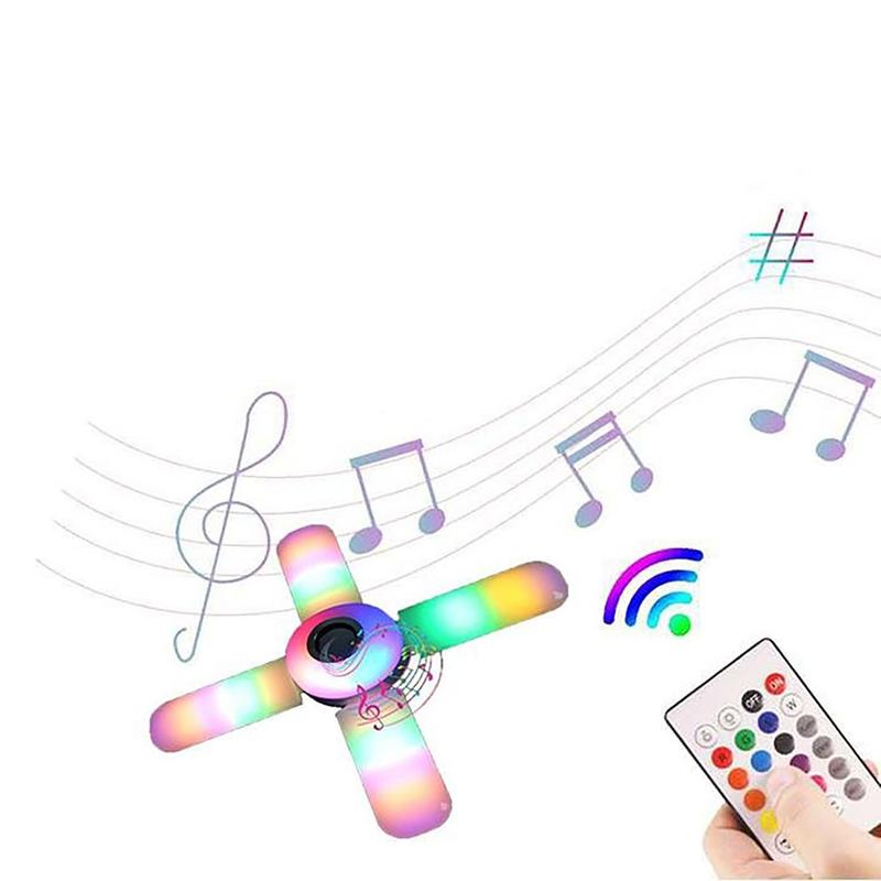 • E27 Bluetooth-Musik-Deckenleuchte - 4-Blatt faltbare RGB-Farbwechsel-Leuchte mit Lautsprecher