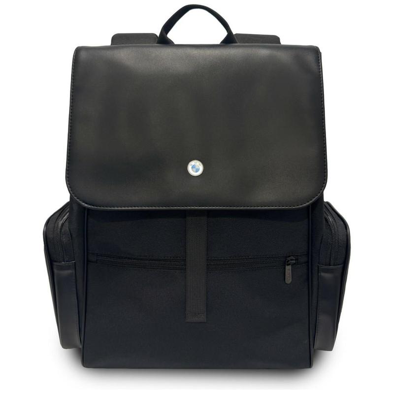 BMW Rucksack mit Seitentaschen und Metalllogo für Laptops bis zu 15 Zoll - Laptop-Rucksack aus Nylon und PU
