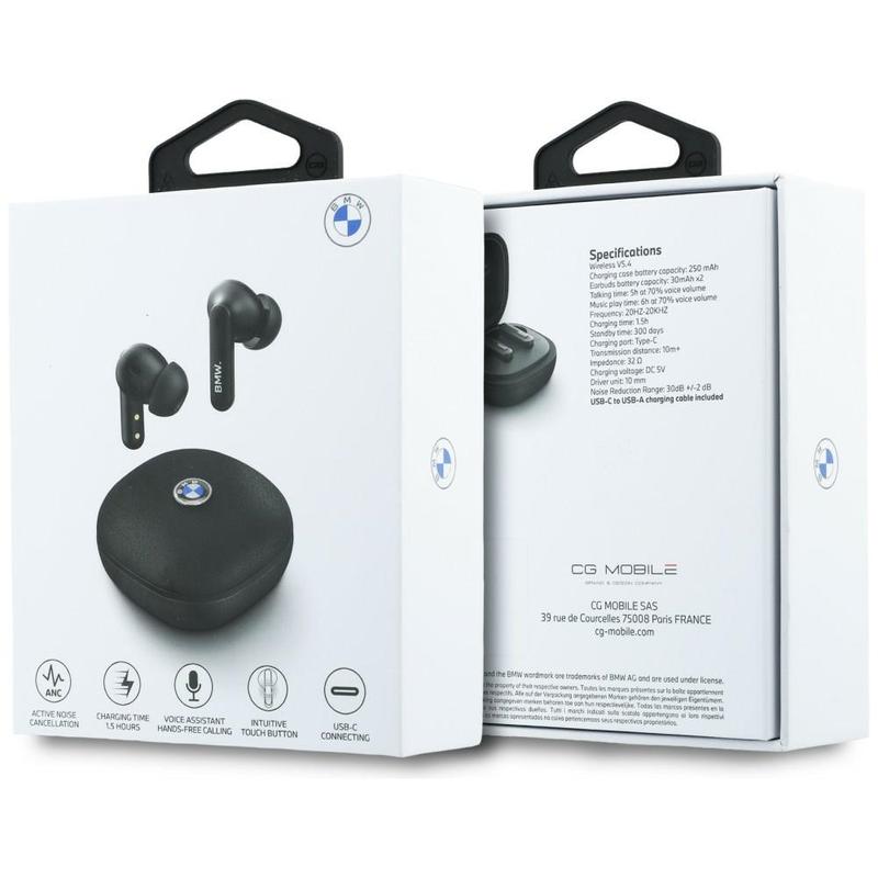 • BMW Leder-Metall-Logo ENC True Wireless Kopfhörer mit Touch-Steuerung - Bluetooth 5.4, Sprachassistent, USB-C-Ladeetui
