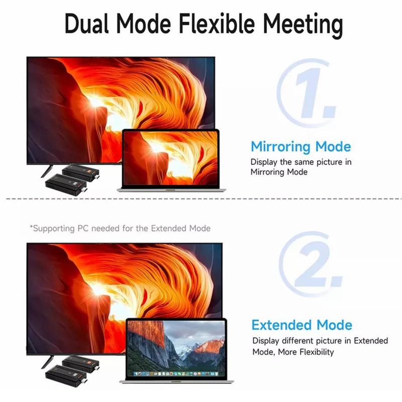 Dieser kabellose All-in-One-HDMI-Extender bietet professionelle Leistung bei einfacher Einrichtung. Er ist ideal für alle, die ein zuverlässiges, hochauflösendes kabelloses Video mit minimaler Eingangsverzögerung benötigen. Ob Sie nun Filme streamen, Präsentationen halten oder Spiele spielen, die BOVBOX 090 sorgt für ein nahtloses visuelles Erlebnis.