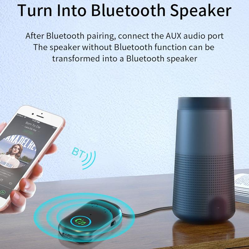 - Empfänger- und Sendemodi: Verwandeln Sie ein AUX-in-Autosystem oder eine ältere Stereoanlage in einen Bluetooth-Empfänger, oder wechseln Sie in den Sendermodus, um von Nicht-Bluetooth-Geräten zu streamen.