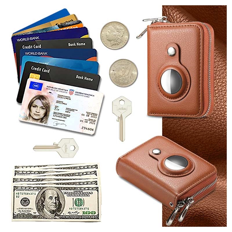 • Brieftaschenhülle mit Reißverschluss, Apple AirTag 1, AirTag 2-Halter und RFID