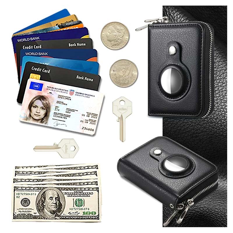 Brieftaschenhülle mit Reißverschluss, Apple AirTag 1, AirTag 2-Halter und RFID