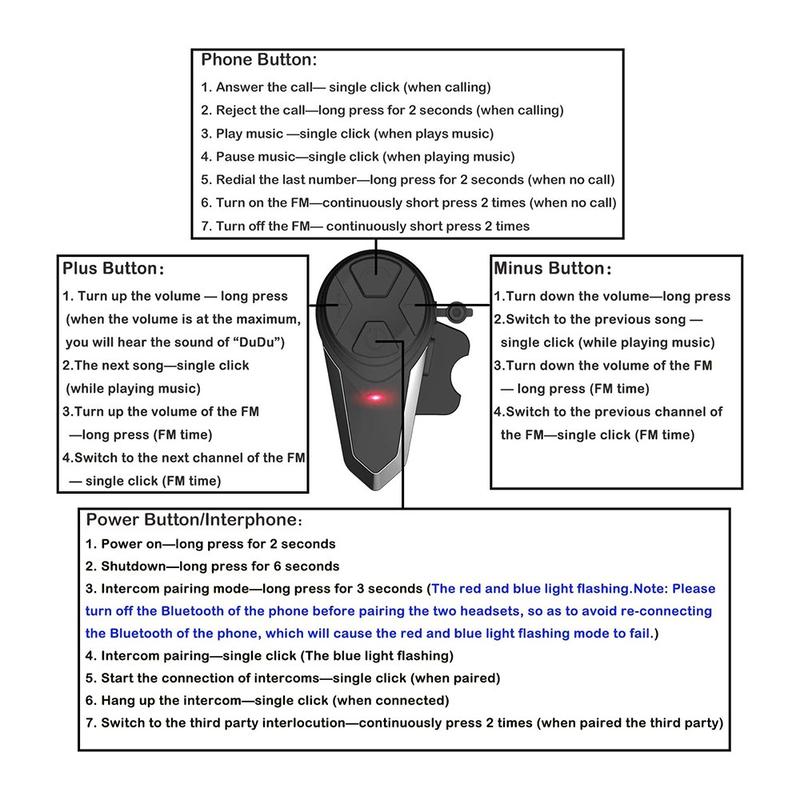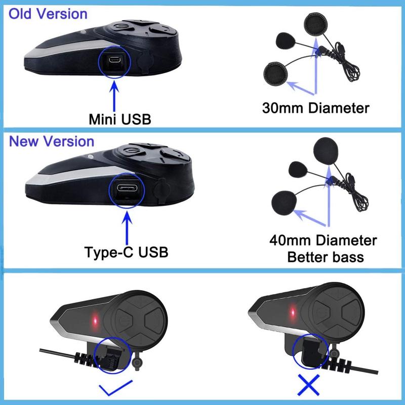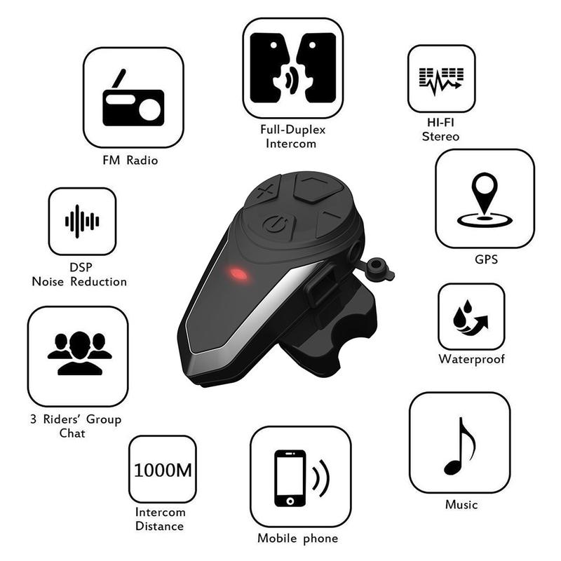 • BT-S3 IPX6 Motorradhelm Bluetooth-Gegensprechanlage - 1000m Reichweite, FM-Radio & geräuschunterdrückendes Headset