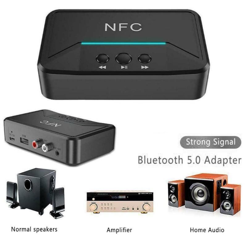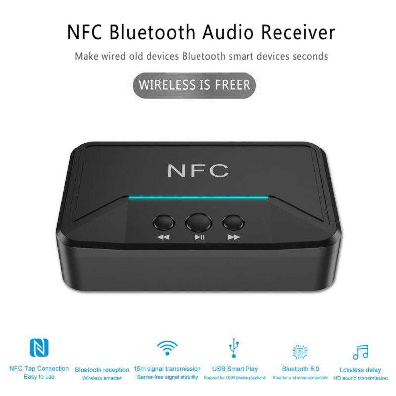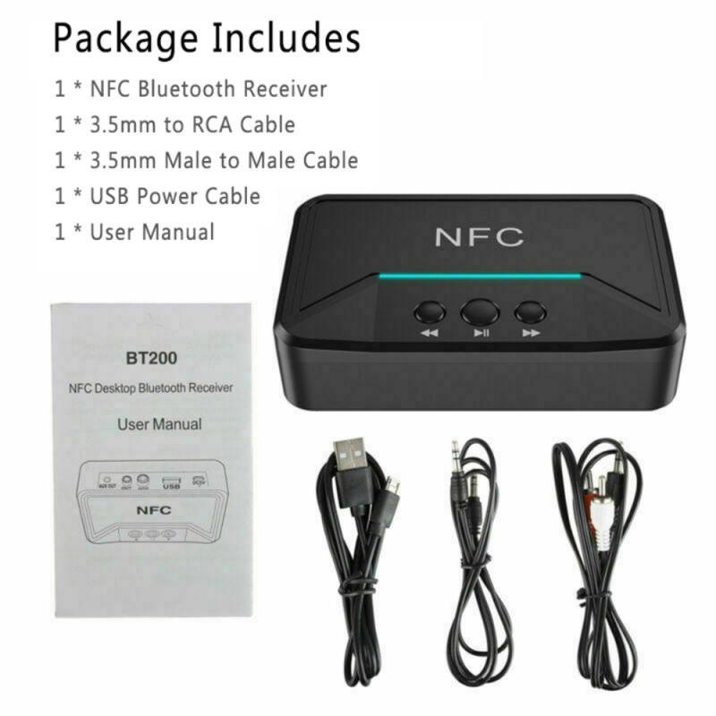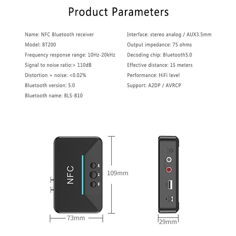 BT200 NFC Bluetooth 5.0 Audio-Empfänger - AUX 3.5mm & RCA Adapter mit A2DP, USB Power, Auto On/Off für Auto & Home Stereo (15 m Reichweite)