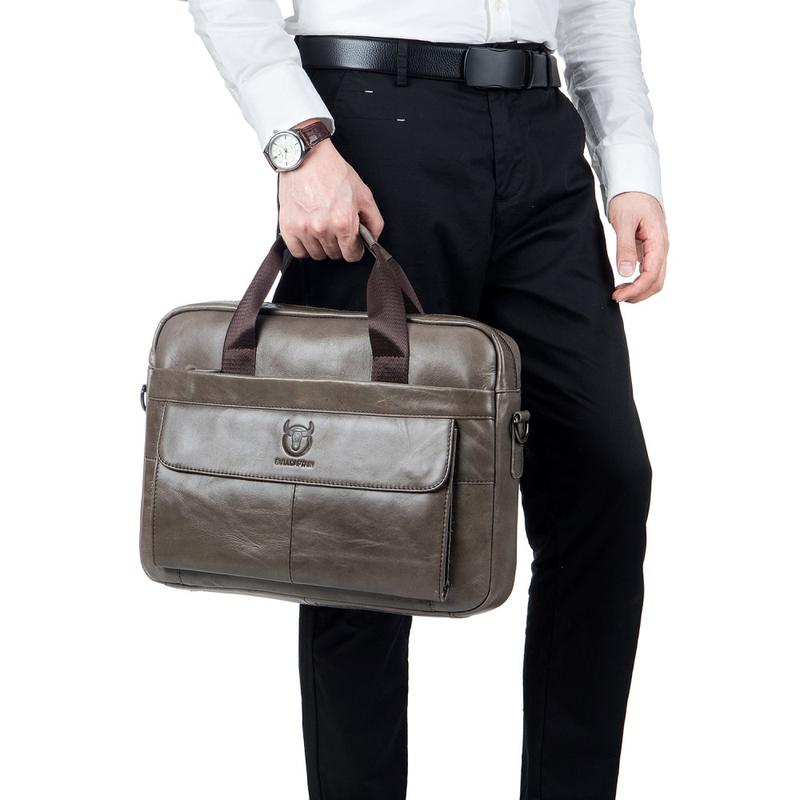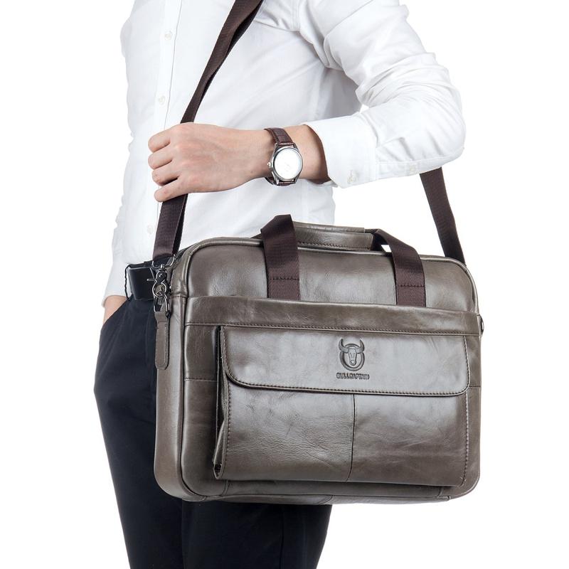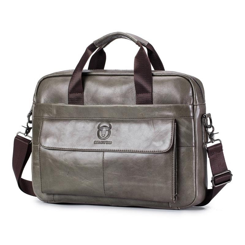 Bullcaptain 046 Laptop- und Umhängetasche aus Leder für Herren - Oberschicht-Rindsleder