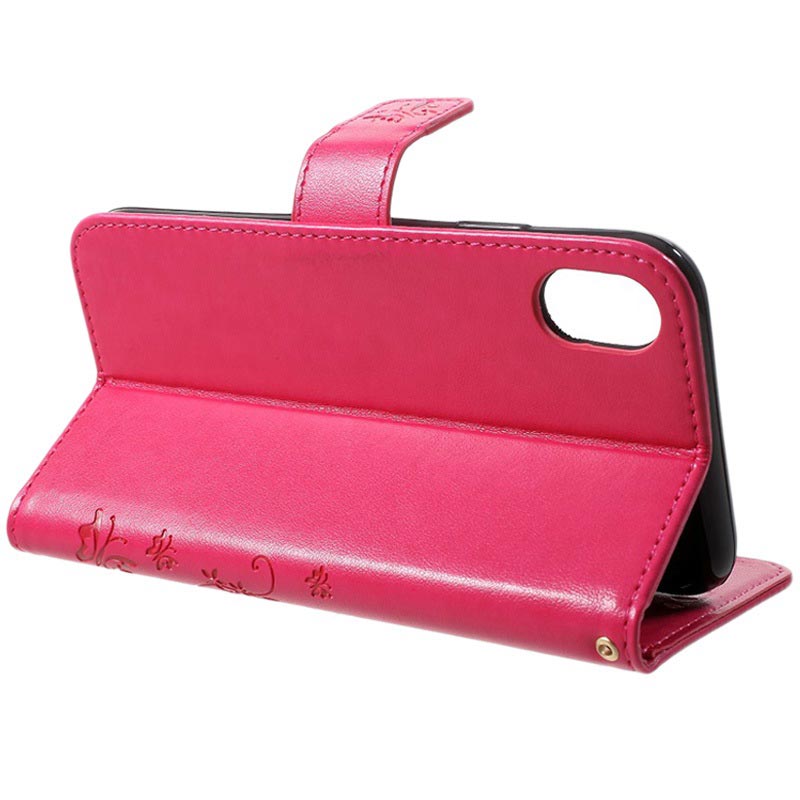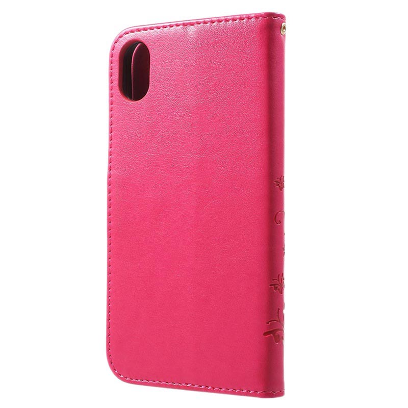 Butterfly Serie iPhone XR Wallet Schutzhülle - Hot Pink