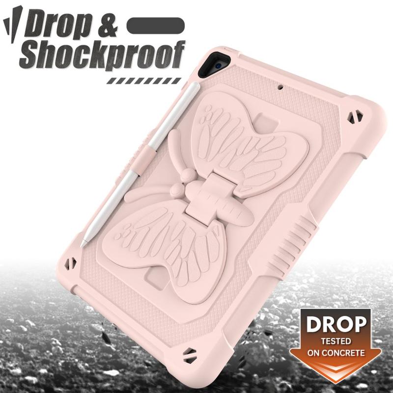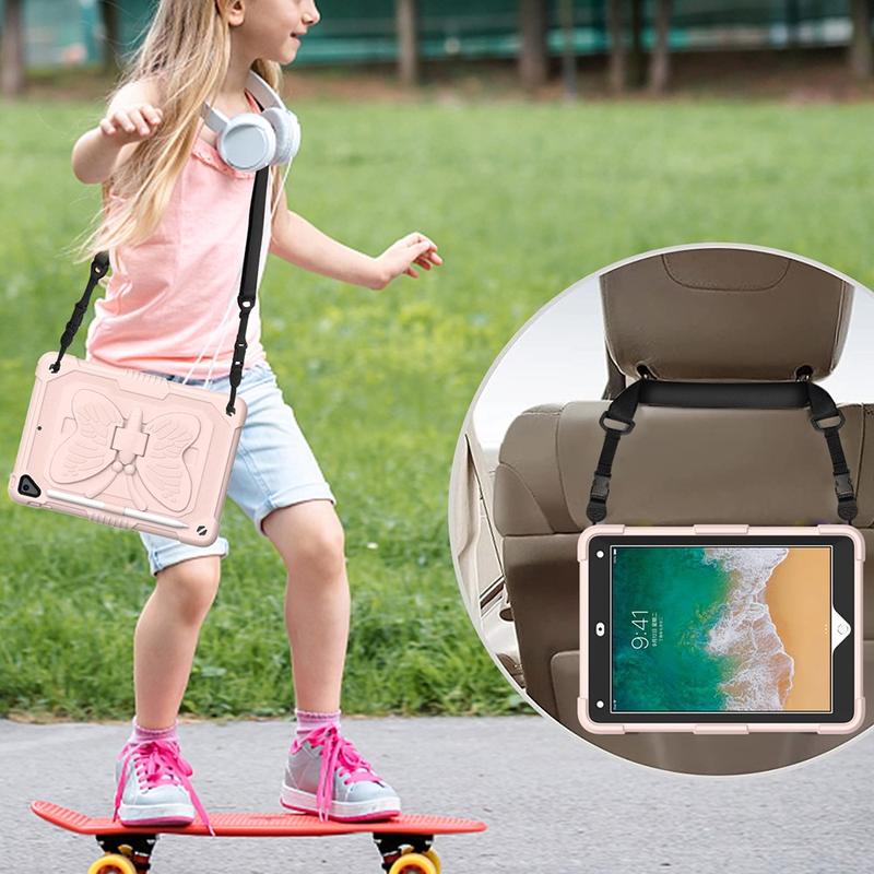 Butterfly Shape Kickstand PC + Silikon Tablet Hülle mit Schulterriemen für iPad 9.7-inch (2018)/(2017)/iPad Air 2 - Pink