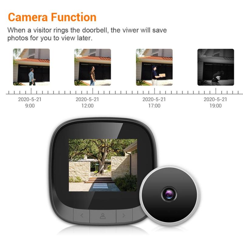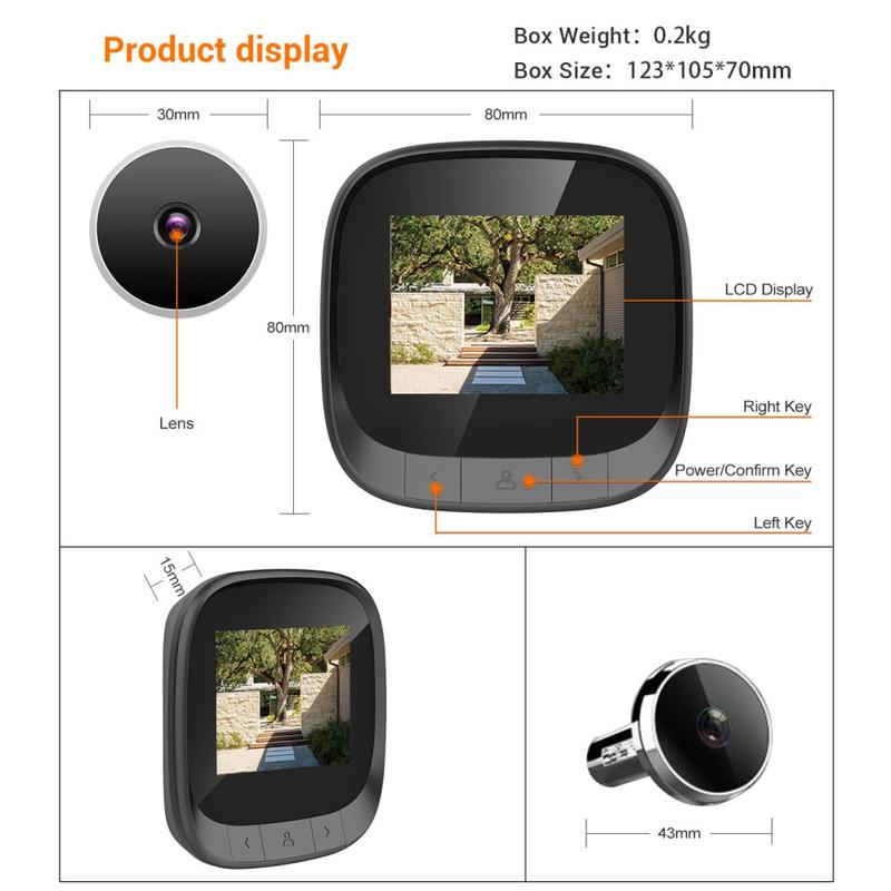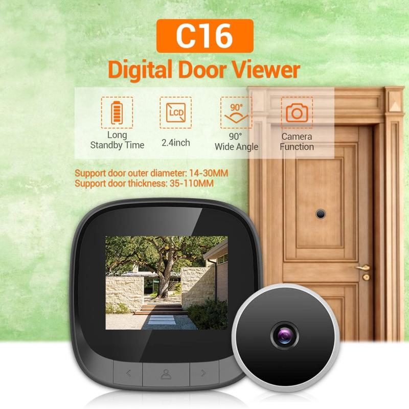 Der C16 2,4-Zoll Smart Door Viewer bietet eine hochauflösende Weitwinkelsichtlösung für die Heimsicherheit. Ausgestattet mit einem 2,4-Zoll-TFT-LCD-Display, einer 0,3-MP-Spionkamera und einem integrierten Fotospeicher können Sie Besucher deutlich sehen und aufzeichnen, wer an Ihre Tür kommt.