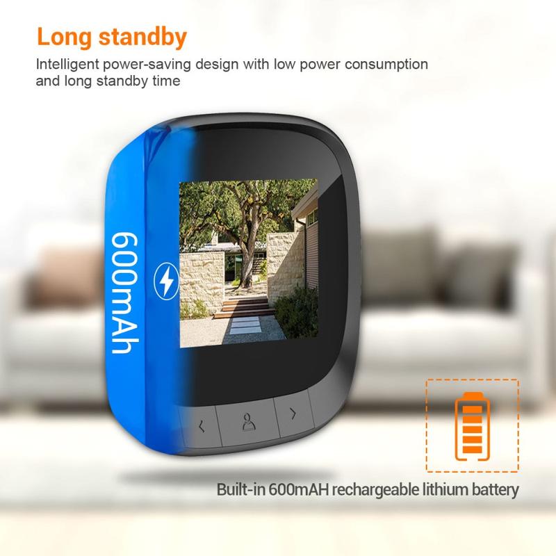 Dieser kompakte Türspion wird von einem eingebauten 600mAh Lithium-Akku betrieben, der einen langen Betrieb ohne häufiges Aufladen ermöglicht.