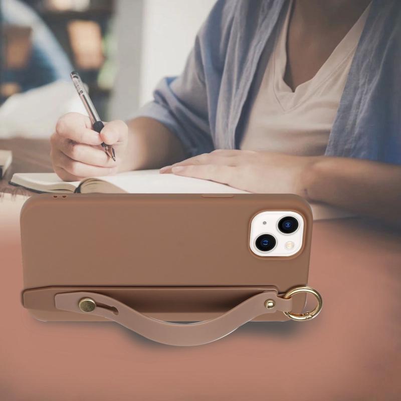 For iPhone 14 Plus Candy Color Phone TPU Cover Anti-drop Anti-scratch Case with Hand Strap Kickstand