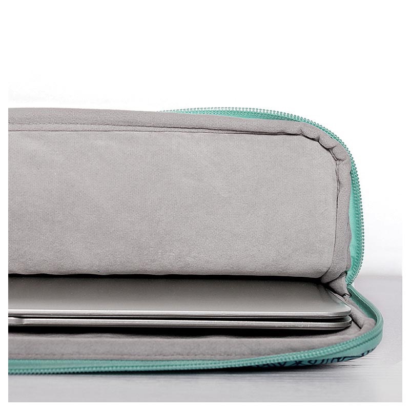 Diese Hülle für Laptops zeichnet sich durch einen einzigartigen Look aus, der sich von alten, schlichten Laptoptaschen abhebt. Darüber hinaus ist das Außenmaterial wasserabweisend, so dass Sie sich keine Sorgen mehr über verschüttete Flüssigkeiten und Regen machen müssen. Unterdessen bietet das weiche Material auf der Innenseite zusätzlichen Schutz vor Stößen und Kratzern für das Gerät.