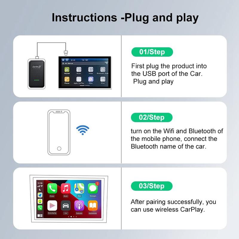 - Plug and Play Design: Erweitern Sie Ihre vorhandene kabelgebundene CarPlay-Funktion auf kabellos, ohne Demontage oder komplexe Einrichtung.
