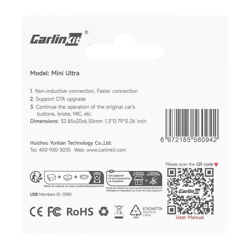 • Carlinkit Mini Ultra CarPlay / Android Auto Wireless Adapter - Schneiden Sie das Kabel, behalten Sie die Kontrolle