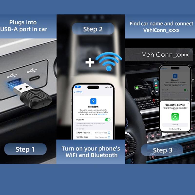 Vergessen Sie verwickelte Kabel. Dieser daumengroße Adapter wird direkt in den USB-A-Anschluss Ihres Autos gesteckt und verwandelt das werkseitig eingebaute CarPlay oder Android Auto in eine nahtlose drahtlose Verbindung. Zwei Fingertipps und Ihr Telefon liegt auf dem Armaturenbrett, Musik wird abgespielt, Karten sind live - und das alles ohne Kabel.
