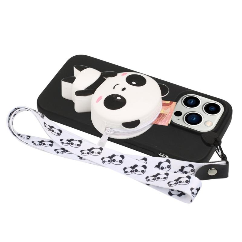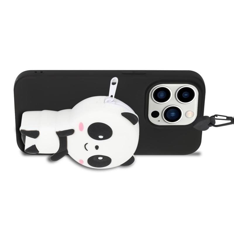 Cartoon Design iPhone 14 Pro Max TPU Hülle mit Reißverschlusstasche - Panda