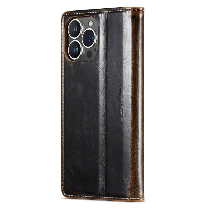 • CASEME 003 Series PU Leather Phone Case For iPhone 14 Pro Max, Shockproof Retro Waxy Texture Magnetic Closure Phone Cover Stand Wallet - Special retro waxy textured design, stylish and fashionable - Made of quality PU leather+TPU material, durable for long term use - Separate slots can hold credit cards and cash, and keep them within reach - Foldable design, easy to fold and store on your pocket - Raised lips around camera for better camera lens protection - The precise cut-outs keep all ports and controls accessible - Provide good protection against bumps, impact and hard hits