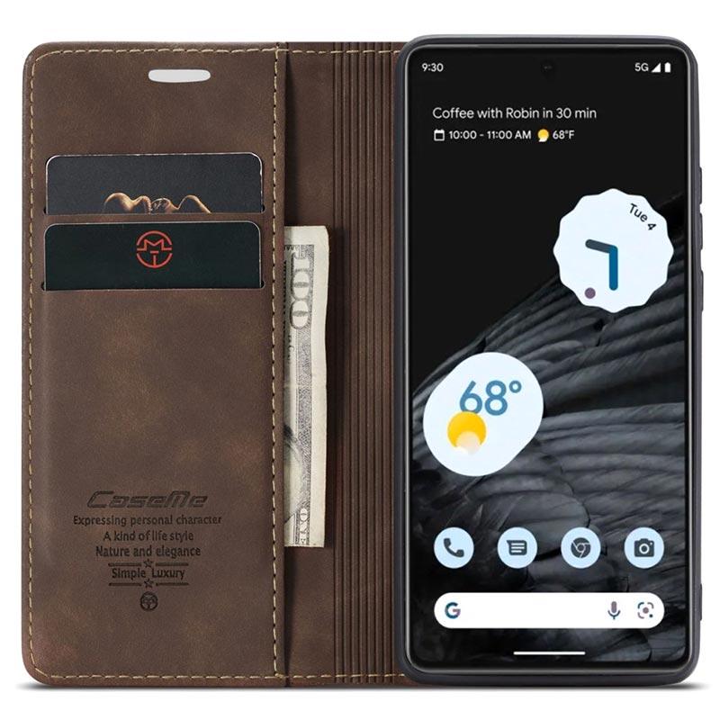 Caseme 013 Serie Google Pixel 7 Schutzhülle mit Geldbörse - Kaffee