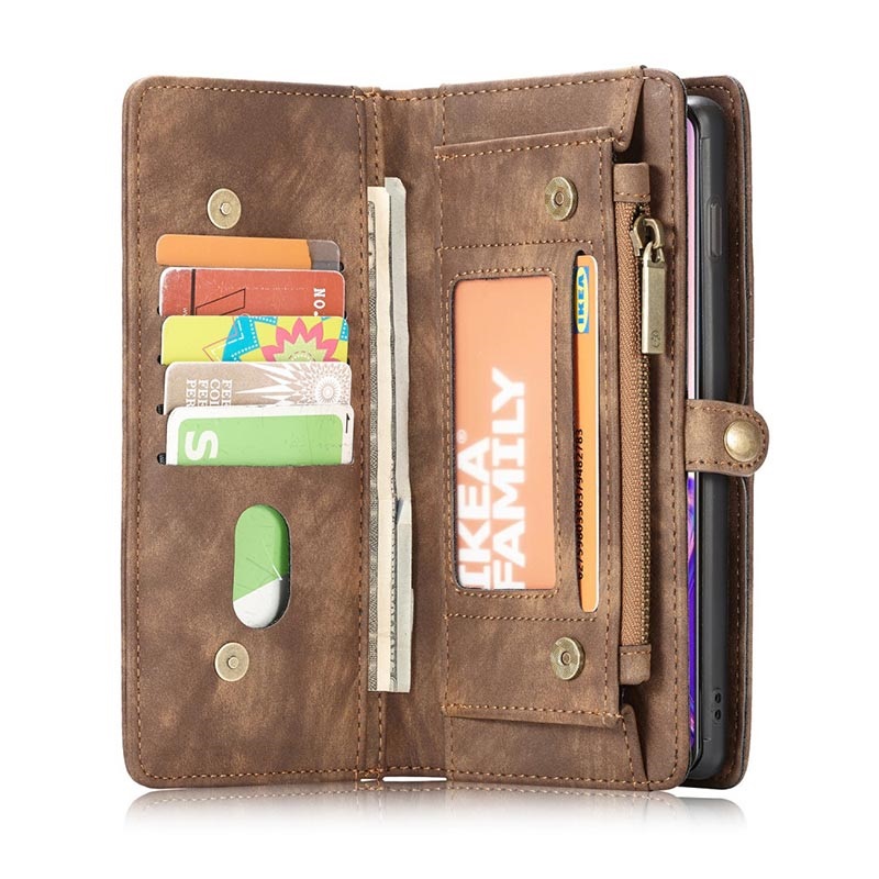 Das CaseMe 2-in-1 Wallet Case verfügt über fantastische 11 Kartenfächer, 3 Cash-Slots und sogar ein kleines Fach mit Reißverschluss. Die Hülle selbst ist mit Spaltleder gefüttert und verleiht ihr ein elegantes, hochwertiges Aussehen und Gefühl.