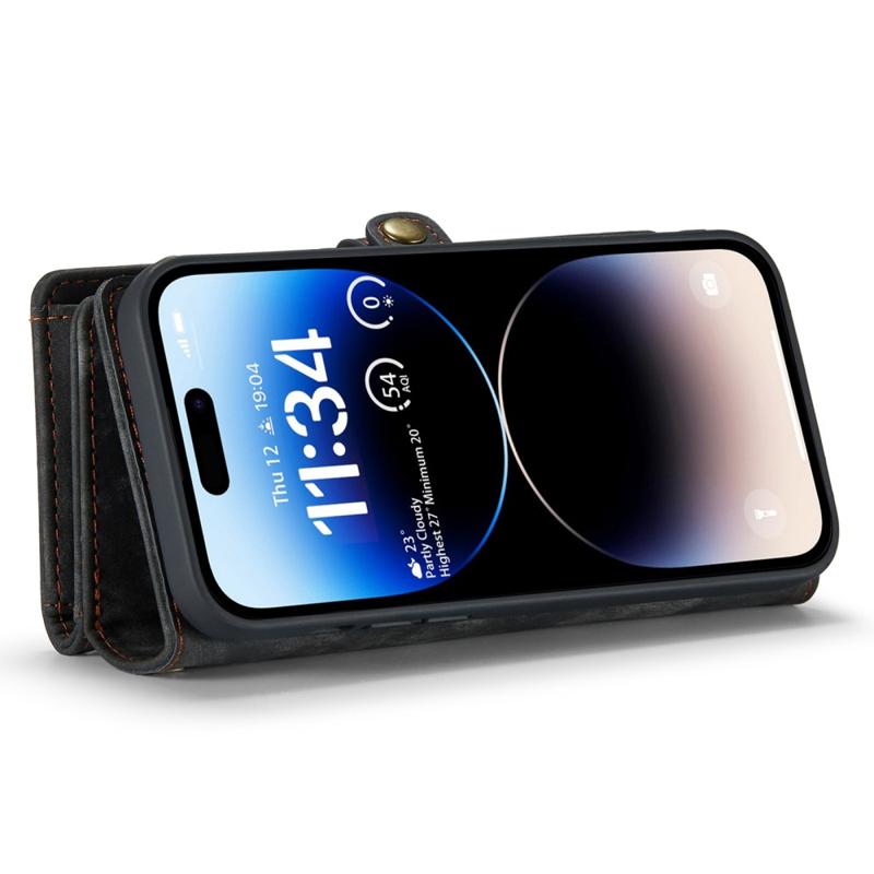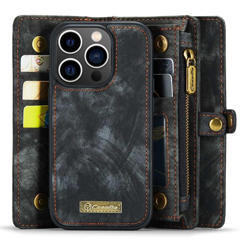 CASEME 008 Series for iPhone 14 Pro Max Multi-Functional Detachable Magnetic Phone Case Split Leather Stand Zipper Pocket Wallet Cover with Strap