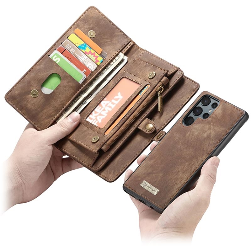 Caseme 2-in-1 Multifunktions Samsung Galaxy S22 Ultra 5G Wallet Hülle - Braun