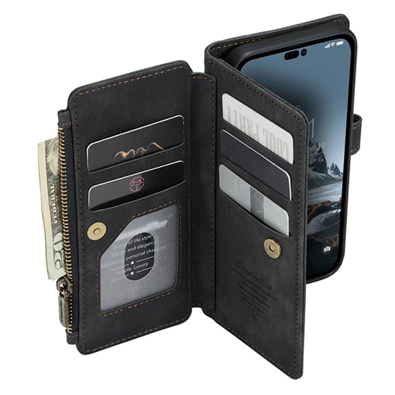 Caseme C30 Multifunktions iPhone 14 Pro Wallet Hülle - Schwarz