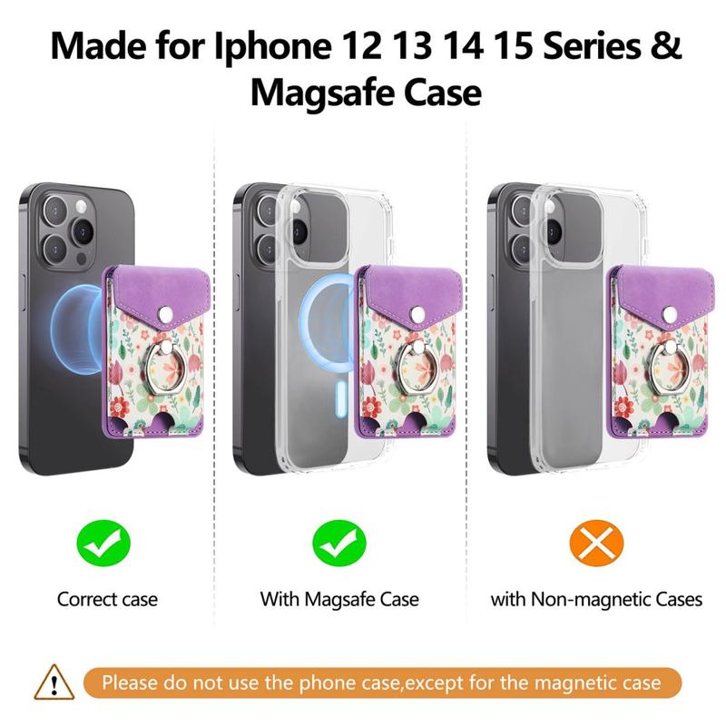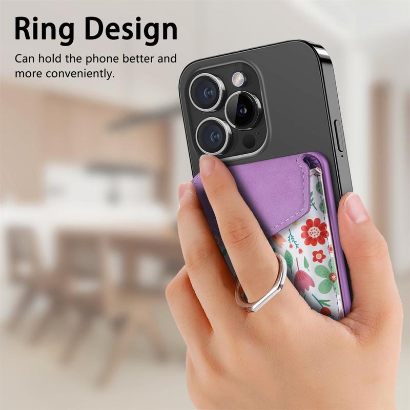 • CaseNeo MC-W3 Magnetischer Kartenhalter mit Ringständer - Gemusterte Brieftasche Kompatibel mit MagSafe
