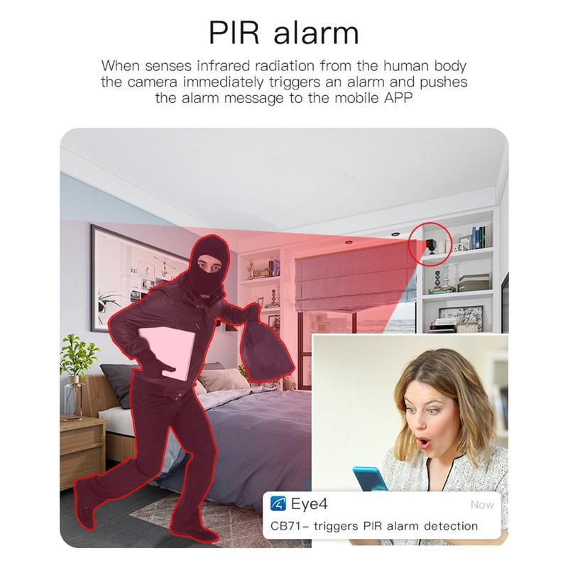 Ihr Vorzimmer, das Kinderzimmer oder eine ruhige Ecke in der Werkstatt - wo auch immer Sie ihn platzieren, der CB71 hält die Augen offen. Ein intelligenter PIR-Sensor erkennt Bewegungen in Echtzeit, die eingebaute Sirene meldet sich, und dank der Zwei-Wege-Kommunikation können Sie sich um Besucher (oder umherstreunende Haustiere) kümmern, ohne das Sofa zu verlassen.