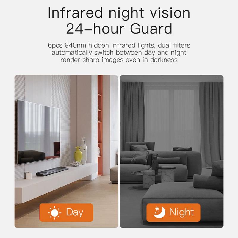 - Nachtsicht in zwei Richtungen - Sechs unsichtbare 940-nm-LEDs sorgen für eine Sichtweite von 5-10 m in tiefster Dunkelheit; das Objektiv schaltet automatisch auf Farbe um, sobald es wieder hell wird.