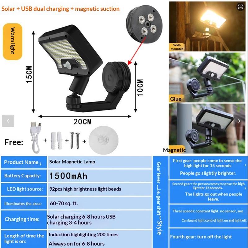 Beleuchten Sie Außenbereiche effizienter mit der magnetischen Wandleuchte CCP0144 mit 92 LEDs und Bewegungssensor. Diese Solarleuchte wurde für Gärten, Terrassen, Wege, Einfahrten, Zäune, Eingänge und andere Außenbereiche entwickelt und vereint intelligente Bewegungserkennung, flexible Installation und wetterfeste Bauweise in einer praktischen Beleuchtungslösung. Ihr LED-Array mit 92 LEDs sorgt für helle Beleuchtung, wenn Sie sie am dringendsten benötigen, und trägt so zur Verbesserung der Sichtverhältnisse und der Sicherheit im Außenbereich bei.