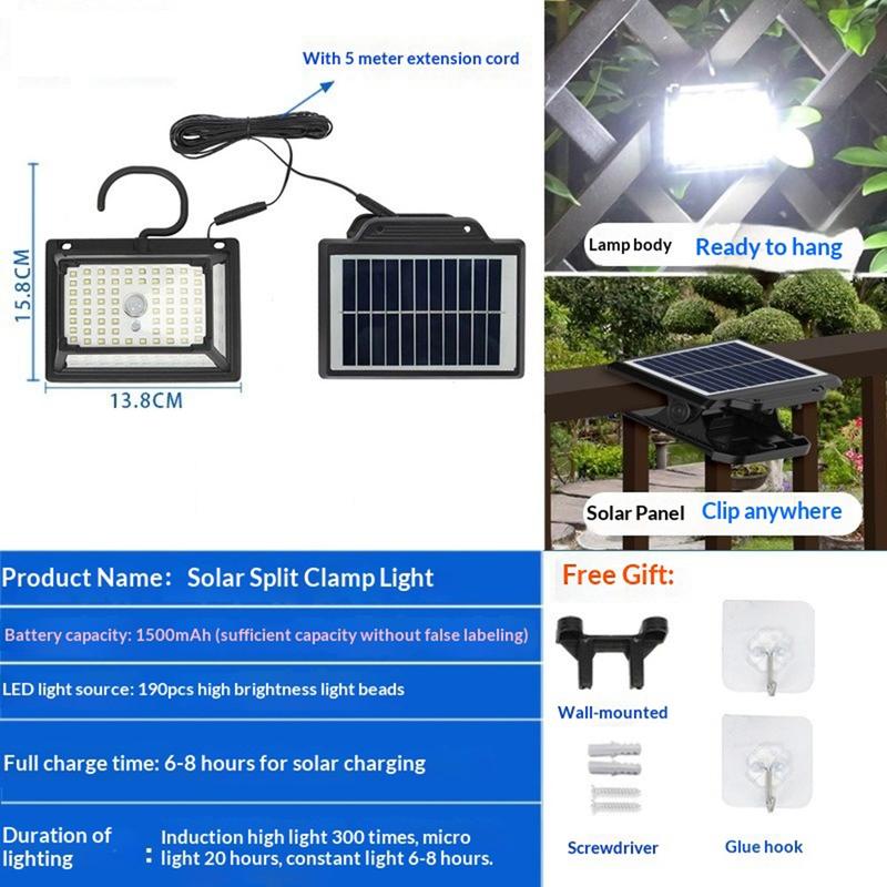 Das geteilte Design ermöglicht es, das Solarpanel und die Leuchte separat zu positionieren, sodass Sie die Leuchte dort platzieren können, wo sie am dringendsten benötigt wird, während das Solarpanel an der besten Stelle zum Aufladen bleibt. Dies macht sie besonders nützlich in Bereichen, in denen direkte Sonneneinstrahlung und die Position der Beleuchtung nicht von Natur aus zusammenpassen.