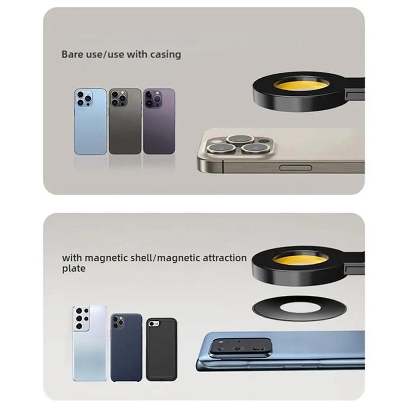 Magnethalterungen sind auf Reisen beliebt, da sie eine schnelle Befestigung und Entfernung mit einer Hand ermöglichen und somit keine sperrigen Klemmen erforderlich sind. Durch Hinzufügen eines Magnetrings kann eine ähnliche Bequemlichkeit für Telefone und Hüllen erzielt werden, die keine integrierte magnetische Ausrichtung haben.