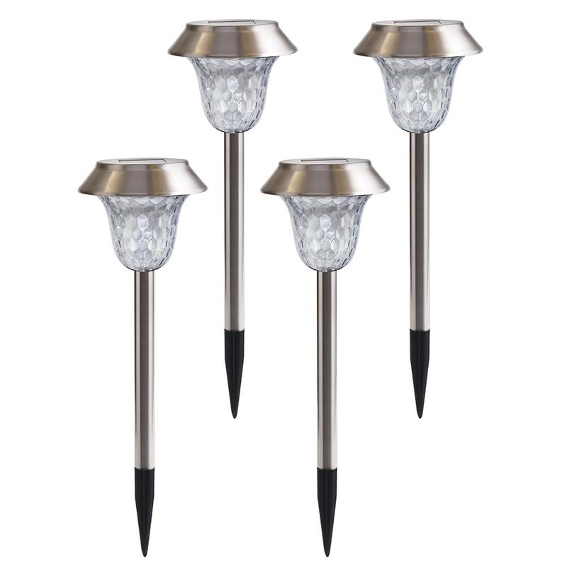 CIS-57453A 4er-Pack Solar-Gartenwegleuchten aus Edelstahl - IP65 - Warmweiß und RGB