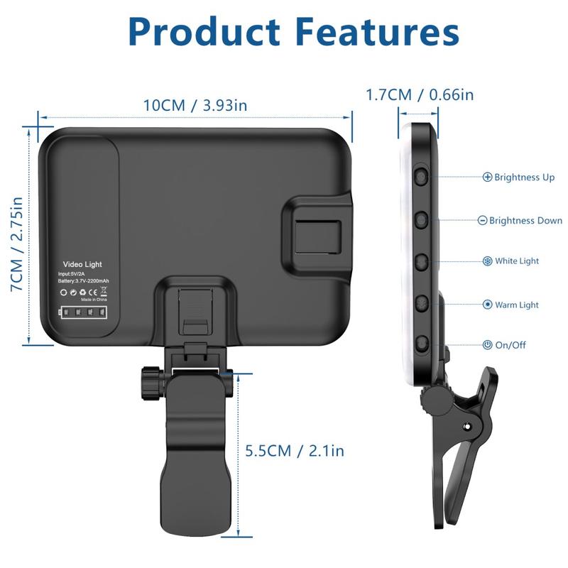 Ausgestattet mit einem 2200-mAh-Akku bietet dieses LED-Aufhelllicht einen längeren Betrieb für Vlogging, Streaming oder Fotosessions ohne ständiges Aufladen.