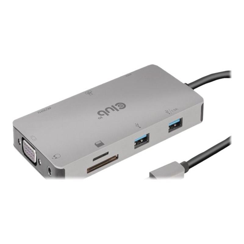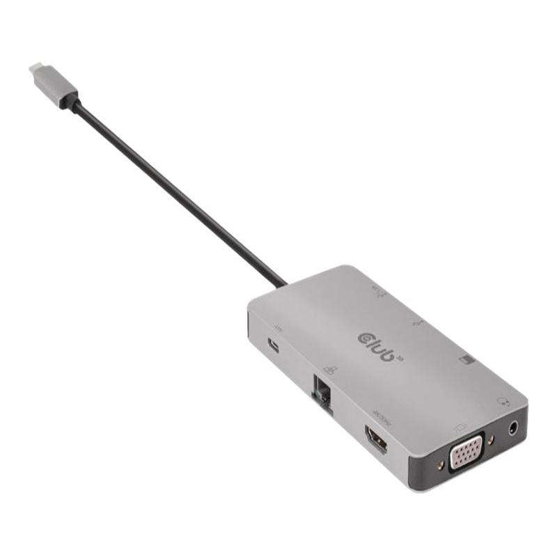 The Club 3D CSV-1594 USB Gen1 Type-C 9-in-1 hub with HDMI, VGA, 2x USB Gen1 Type-A, RJ45, SD/Micro SD card slots and USB Gen1 Type-C Female port, provides a very advanced, efficient solution to extend a single USB Gen1 Type-C port to be multiple ports. It integrates video, data and power ports that allows to connect 2 displays simultaneously for enjoying videos on a larger screen, connect multiple USB Gen1 devices for data transmission up to 5 Gbps, connect a Gigabit Ethernet source for getting your PC connected to super high speed network, or connect to headset to enjoy fantastic music. It also provides PD charging for support up to max. 100 W PD charging. This is for operating this device and charge the host simultaneously. It can work on all DP 1.2 Alt mode supported USB Gen1 Type-C hosts.