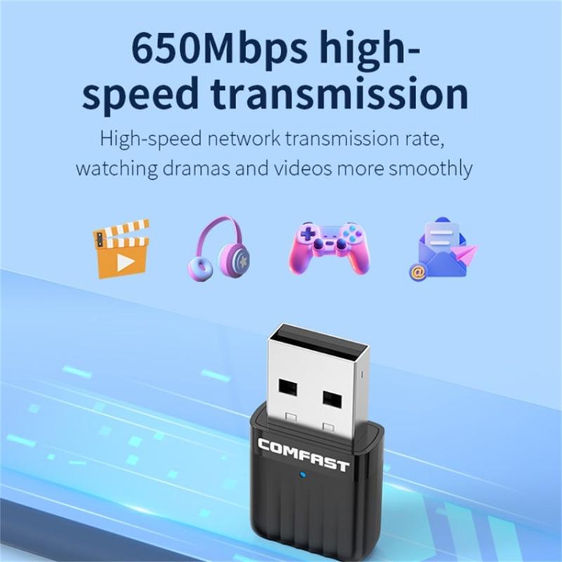Comfast CF-811ACV3 Dual-Band WiFi Adapter - 650Mbps USB Wireless Netzwerkempfänger für Desktop PC & Laptop