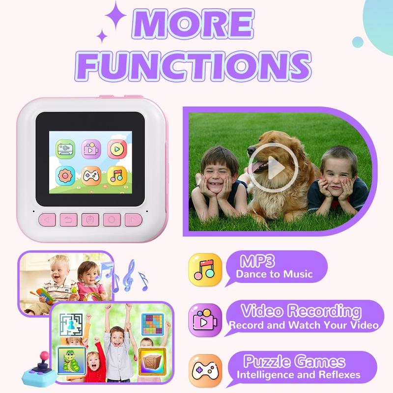Führen Sie Ihr Kind mit der CP02 Kids HD Digitalkamera mit 2,4-Zoll-IPS-Bildschirm und integriertem Thermodrucker in die Welt der Fotografie ein. Ausgestattet mit einer 32 GB TF-Karte und einem Kartenlesegerät können Kinder mit dieser Kamera Fotos und Videos aufnehmen und ihre Kreationen sofort ausdrucken. Der 1500-mAh-Akku sorgt für eine lange Nutzungsdauer, während die robuste ABS+Silikon-Konstruktion die Kamera sicher und sturzsicher macht. Mit lustigen Funktionen wie DIY-Graffiti, MP3-Musikwiedergabe und Puzzlespielen ist sie das perfekte Gadget für kreative Spiele.
