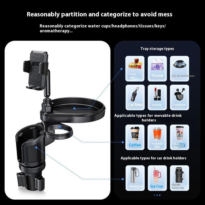 • CP242 4-in-1-Erweiterungsschale für Auto-Cup-Halter - Universal-Telefonhalter, Cup-Halterung und drehbare Ablage