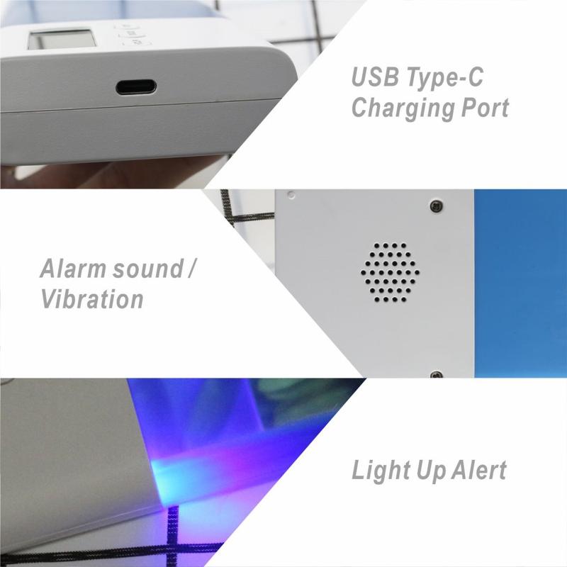 Der CR-250 vereint ein Pillenetui, einen Vibrationsalarm, einen Countdown-Timer und ein Reiseladegerät in einem 155 g schweren Gerät, das Platz spart, Einwegbatterien überflüssig macht und sicherstellt, dass Sie keine Dosis vergessen. Die BPA-freie, versiegelte Konstruktion entspricht den strengen EU-Gesundheitsnormen und ist damit ein cleveres Upgrade gegenüber fadenscheinigen Plastik-Organizern.