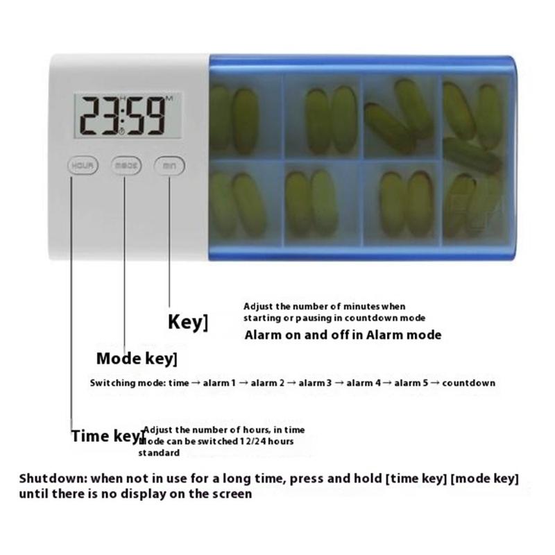 CR-250 Intelligenter Pillen-Organizer mit elektronischem Timer und 7 Fächern - Blau