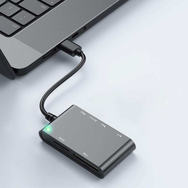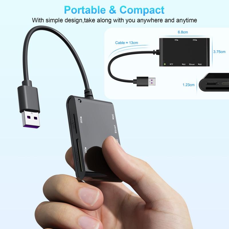 - 6-in-1-Kartenleser - Unterstützt Smart-, MS-, M2-, TF-, SIM- und SD-Karten für eine umfassende Nutzung.