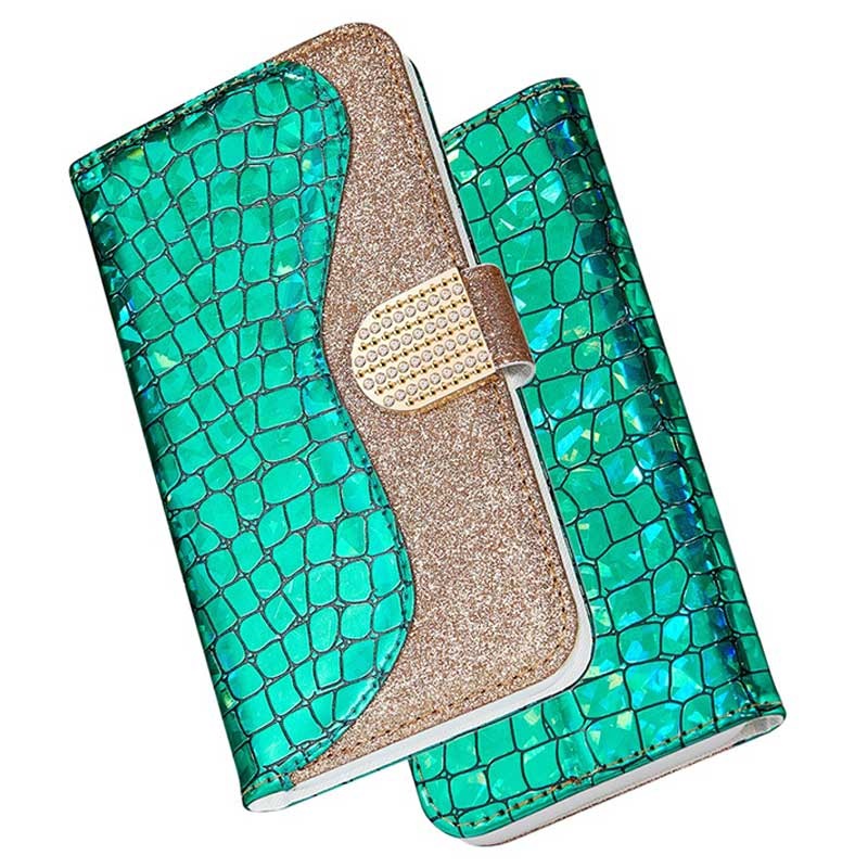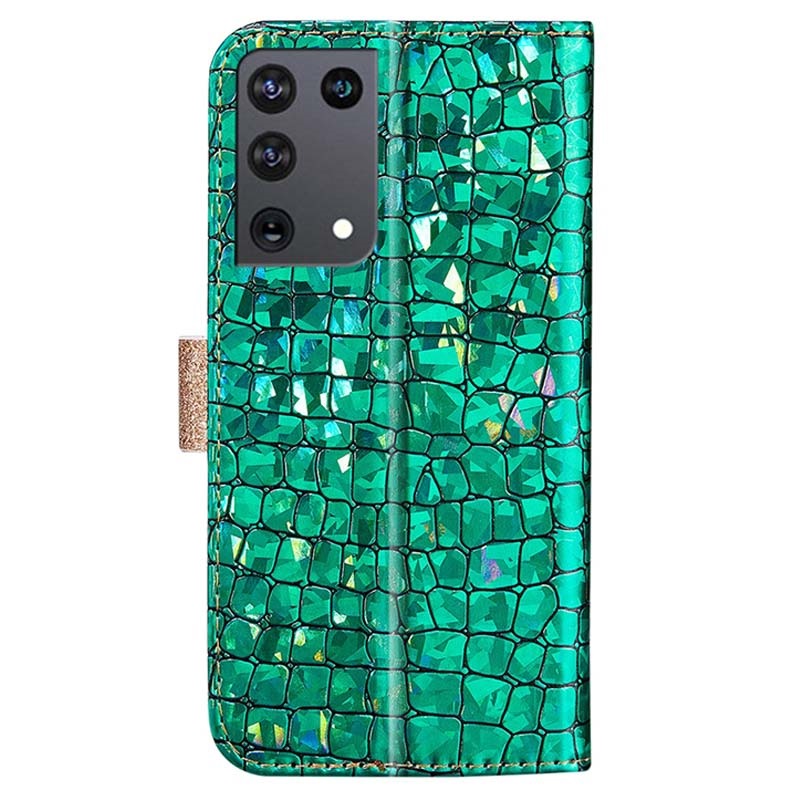 Croco Bling Serie Samsung Galaxy S21 Ultra 5G Wallet Schutzhülle - Grün