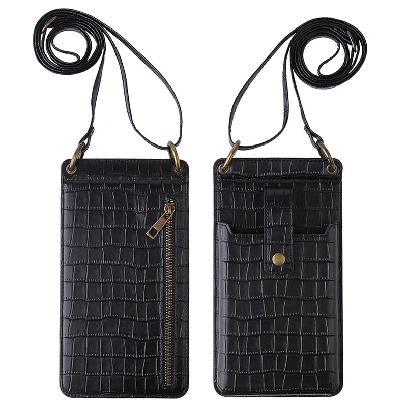 Packen Sie Ihr Smartphone, Ihren Ausweis, Ihre Kreditkarten und etwas Bargeld in diese hochwertige Umhängetasche, und schon kann es losgehen. Es besteht aus hochwertigem, strapazierfähigem Polyurethan mit Krokoprägung und einem Reißverschluss und einer Schnalle aus Legierung, die großartig und stilvoll aussehen. Darüber hinaus ist der innere Schminkspiegel praktisch, um Ihr Aussehen überall schnell zu überprüfen.